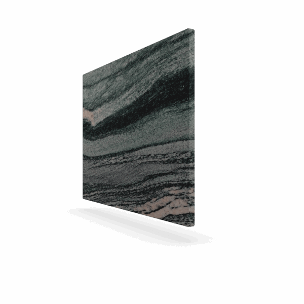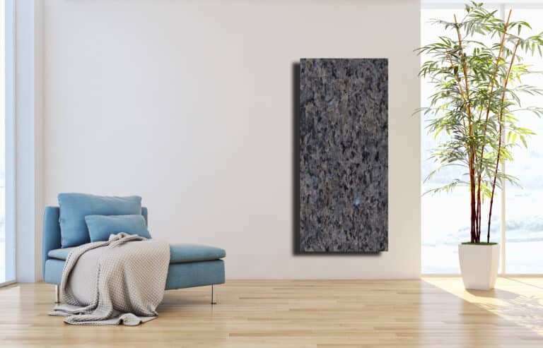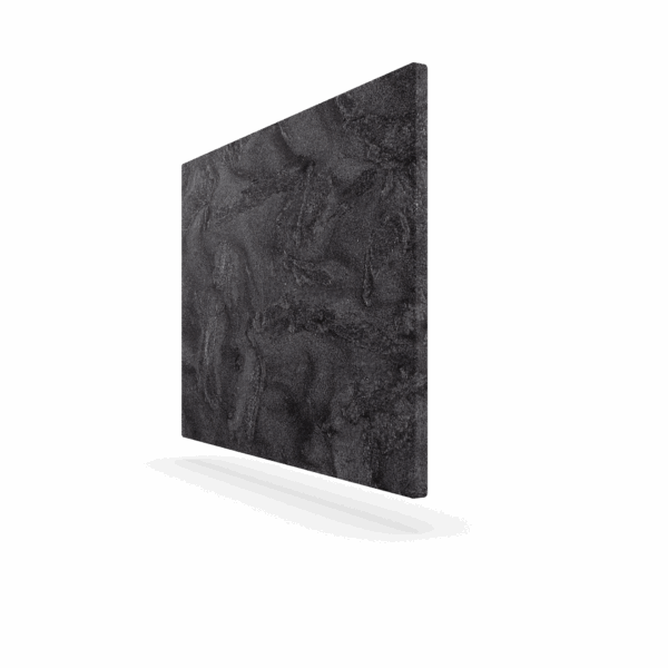 Matrix is a dark granite from Brazil with silver-gray swirl structures on a glossy background. The surface is reminiscent of liquid metal and appears modern and expressive. As a heating surface, Matrix impresses with high material density, excellent heat storage, and uniform radiation emission. The polished or antiqued surface complements different furnishing styles – from puristic to rustic. Ideal for living areas with architectural standards. Matrix combines technical robustness with extraordinary visual dynamics.