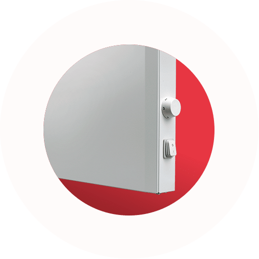 The patented ceramic high-performance heat storage panel stores heat and releases it gradually. This reduces switching cycles and lowers power consumption compared to simple convectors.