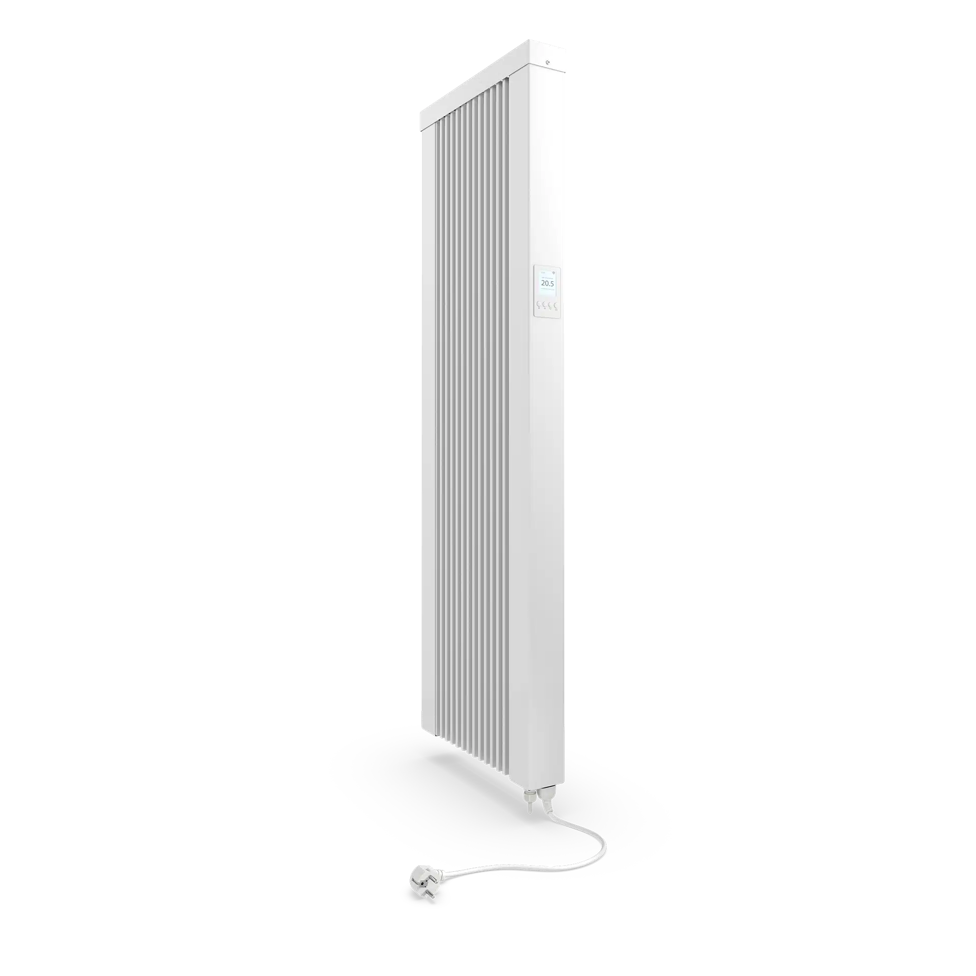 The tall H DSM partial storage heater from TECHNOTHERM is an electric direct heater with an integrated fireclay storage core, short heat-up time, and large storage volume. It delivers an approximately 50/50 mix of radiant and convective heat and is especially suitable for continuously used living and work spaces. Smart thermostat from the DSM series integrated. Internet-enabled controls allow convenient programming, remote access, and integration of self-generated electricity. The units are available in various sizes, IP ratings, and color options and can be installed as a wall-mounted unit. Wall mounting only.