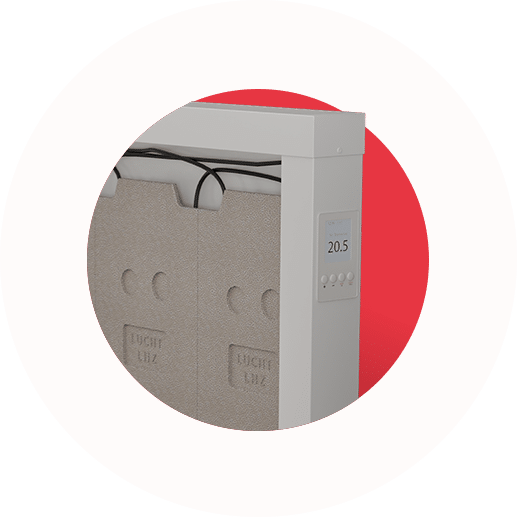 Auch nach dem Abschalten bleibt der Raum warm – durch Restwärmenutzung aus dem Speicherkern.