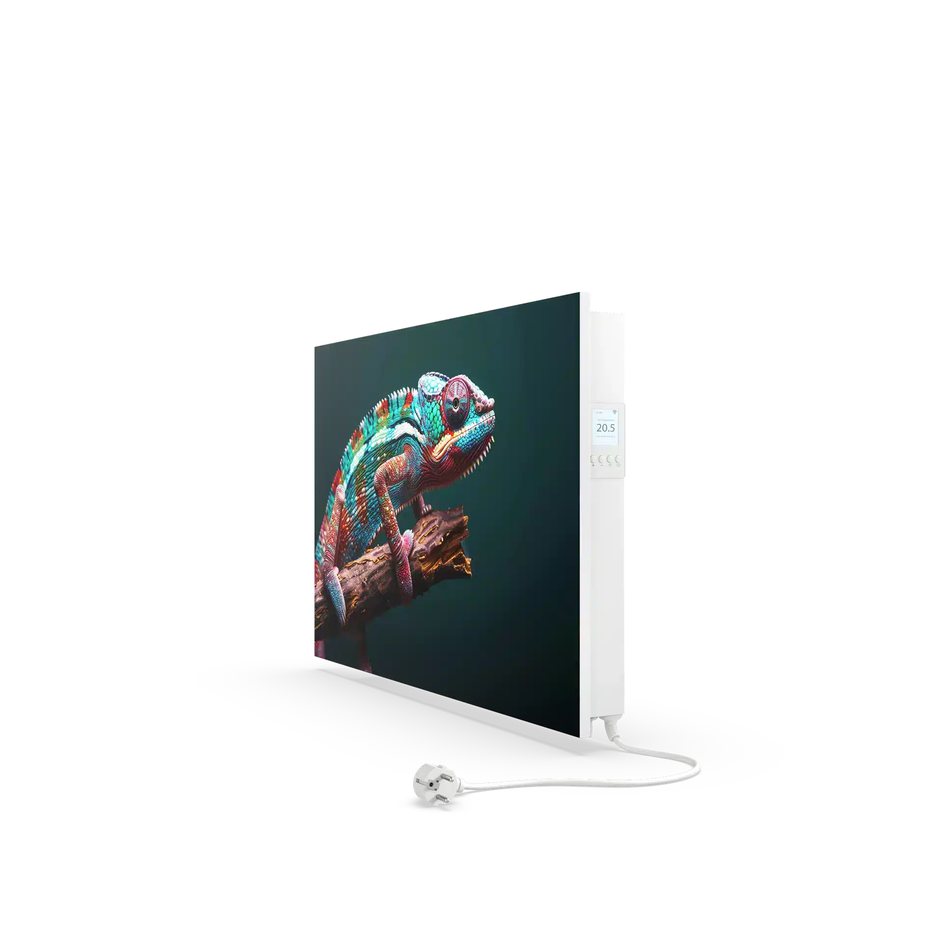The TECHNOTHERM SPH wall convector with motif is a direct-heating convector with an aluminium heating element and an integrated special ceramic heat store for even, delayed heat release. The front can be customised with your own motif or an image from the TECHNOTHERM gallery. The robust metal housing mounts flat on the wall at approx. 8 cm deep. A side-mounted, pre-fitted thermostat of your choice handles control. Two independent safety cut-outs protect against overheating. Available in outputs from 750 W to 2.0 kW, ready to connect with plug and protection class I.