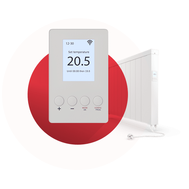 Technotherm’s sleek LED thermostat offers basic temperature control functions and is primarily controlled via app. Ideal for rental properties, holiday homes, or centrally controlled systems.